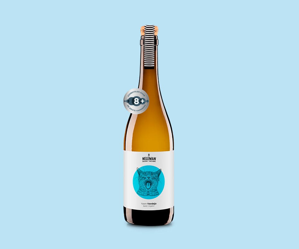 'De muscat is vaak bijzonder aromatisch met zijn eigen dominante muskaatsmaak, de chardonnay neigt over het algemeen meer naar vol vet tropisch fruit. Hier houden ze elkaar een beetje in toom. Qua fruit proef je verschillende soorten meloen, van fris tot zoet, en allerlei steenvruchten. En natuurlijk wat muskaatdruif. Een wijn om jezelf eens mee te verrassen. Met de typische Neleman-draaikurk. En uiteraard biologisch geproduceerd, zoals al hun wijnen.'