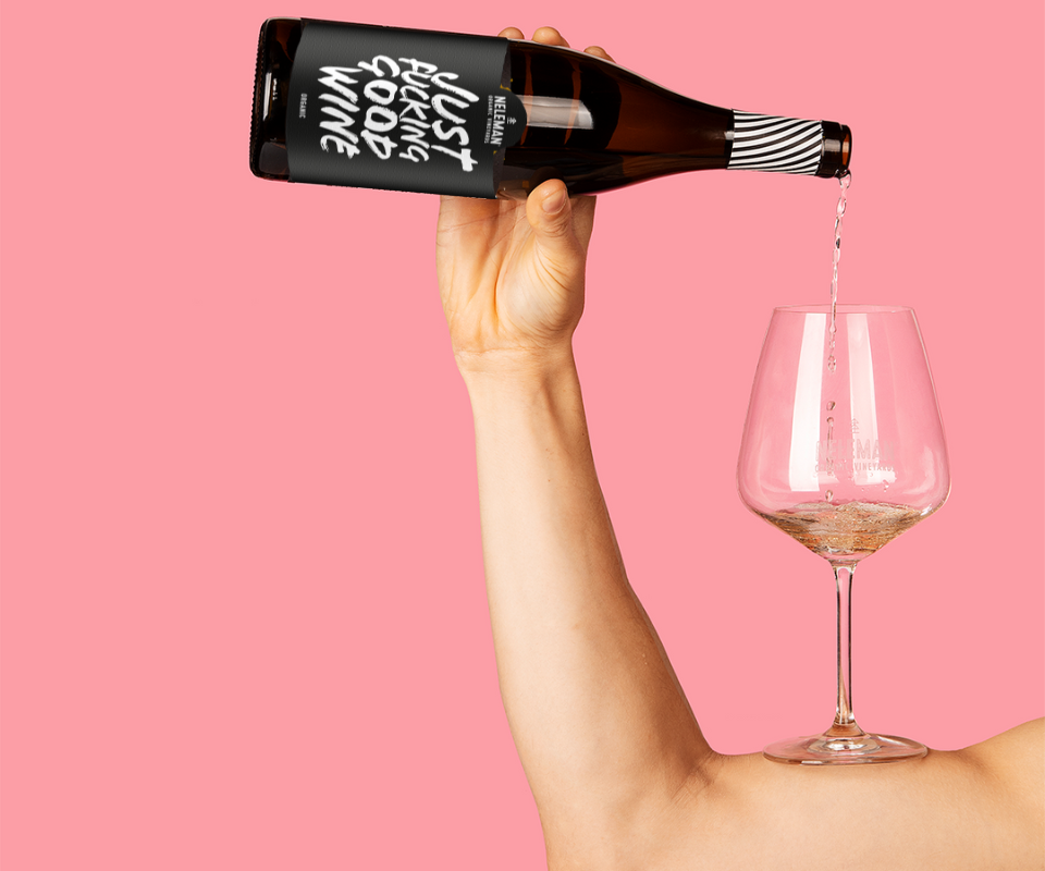‘Wijn is genieten. Een moment voor jezelf. Of gezellig samen. Maar 94% van het wijnareaal wereldwijd is niet biologisch. In deze wijngaarden worden pesticiden en herbiciden gebruikt in de wijngaard, wat schadelijk is voor jou, voor de dieren en ook voor de grond waarop de wijnstokken groeien. En kunstmatige stoffen om de geur, kleur en smaak op niveau te houden.