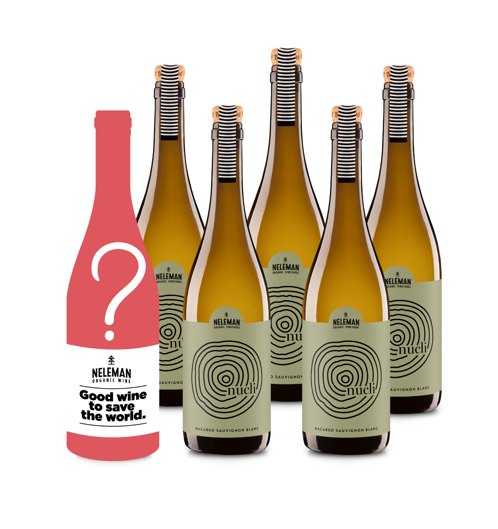 Een pakket met vijf keer de populaire Nucli Macabeo Sauvignon Blanc en een speciale verrassingsfles. In het pakket zit een speciale uitleg over deze bijzondere zesde fles en waarom Derrick deze gekozen heeft. Hou je van frisse witte wijn, laat je dan verrassen!