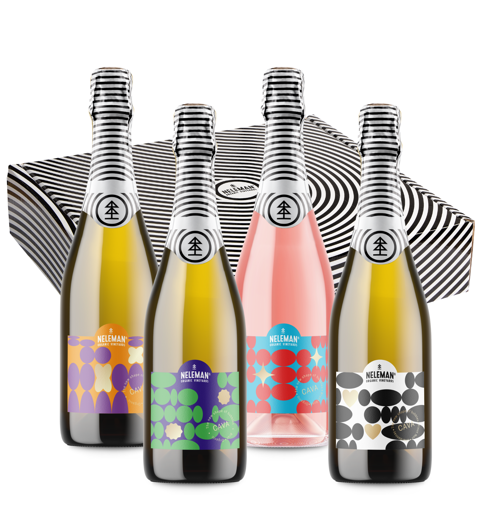 Al onze vier nieuwe cava's bij elkaar in een mooie pakketdoos!