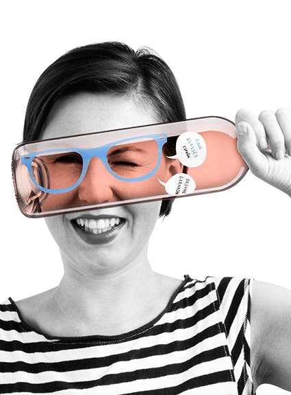 Je kunt het leven letterlijk door een roze bril bekijken met het etiketontwerp op de fles. Dus, wat let je?